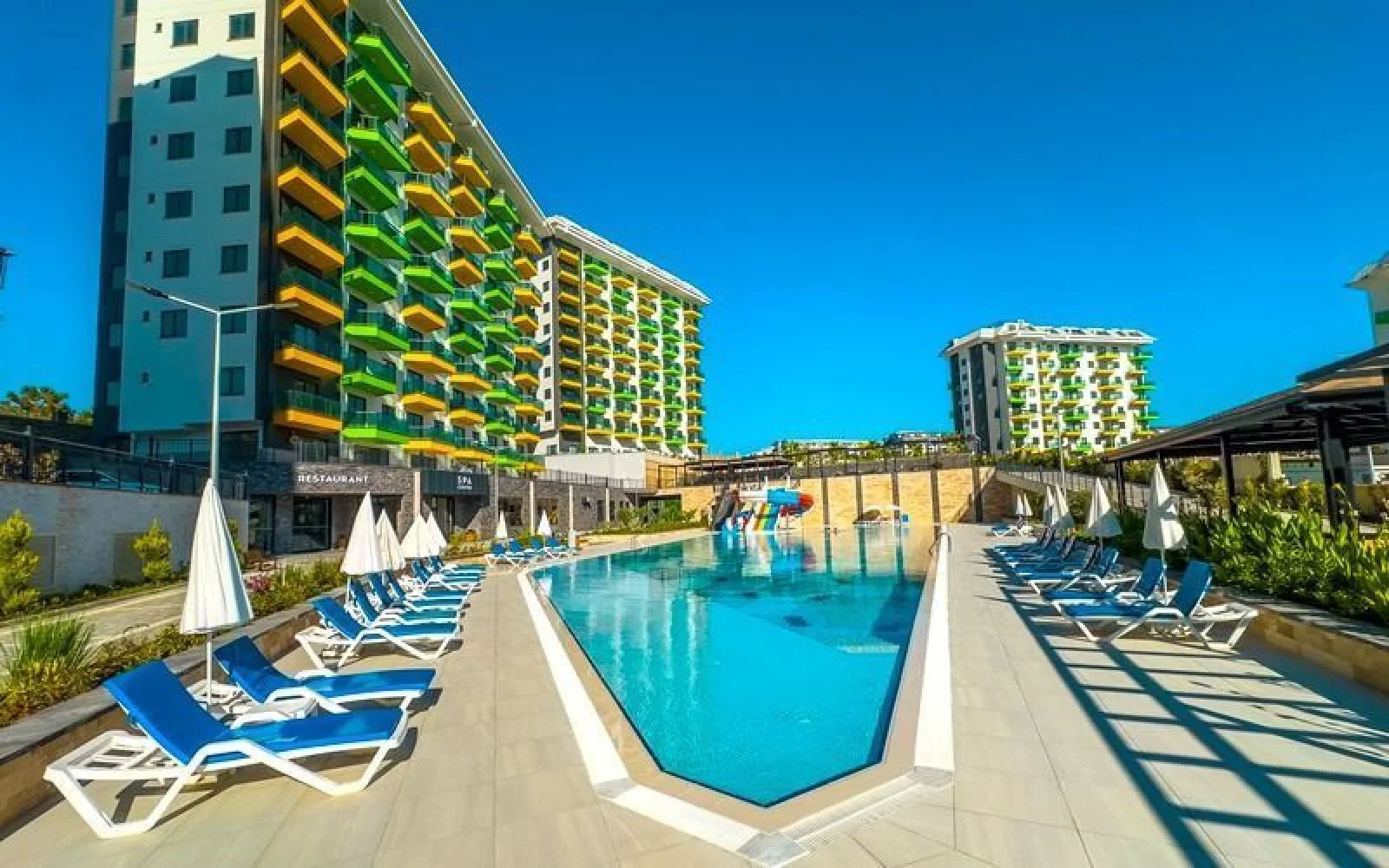 Außenpool mit Wasserrutsche