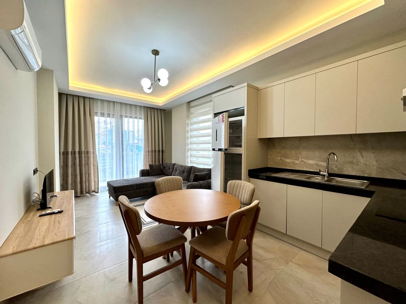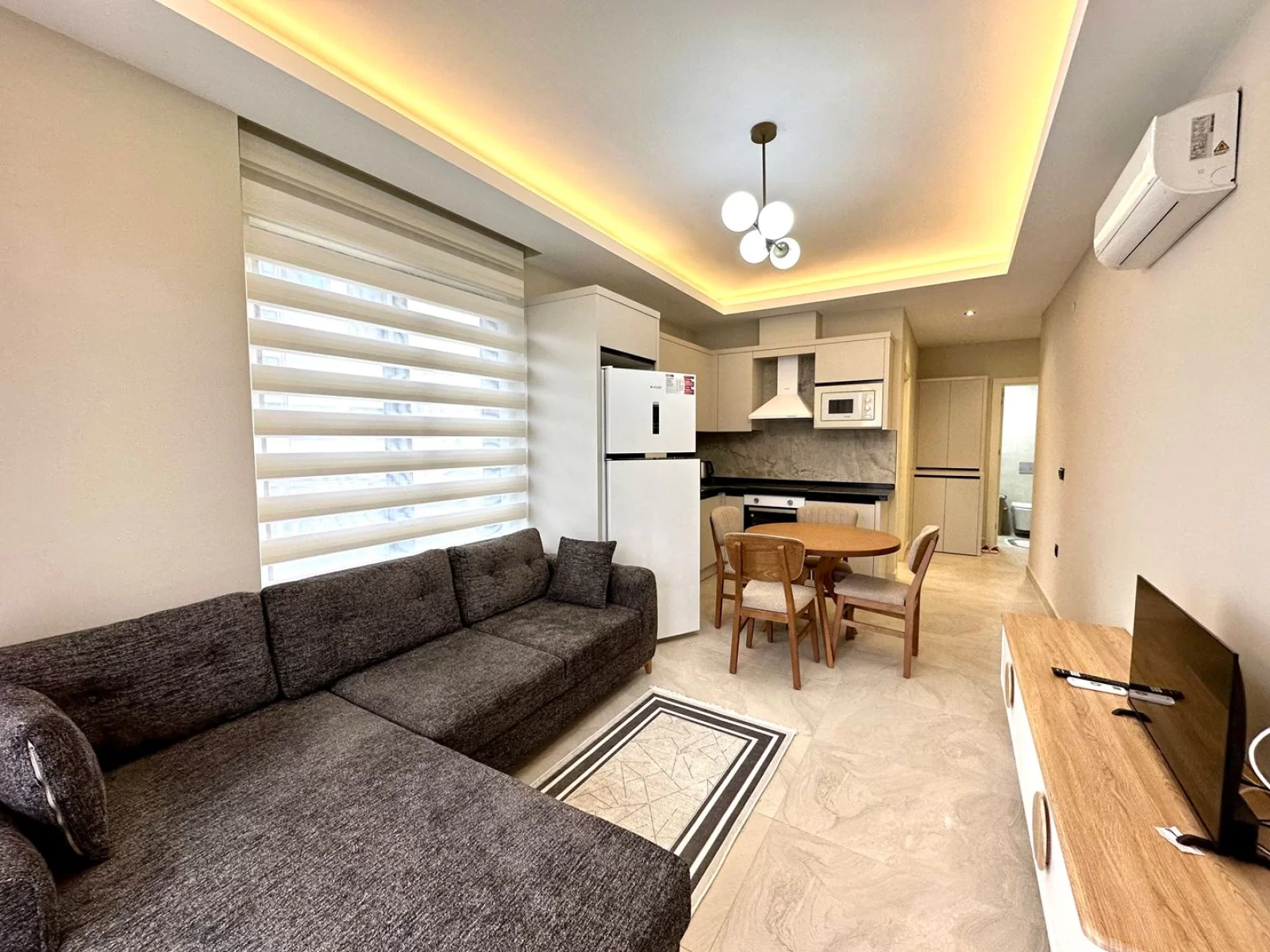 1Diese 1+1 Wohnung befindet sich in Mahmutlar, Alanya, und bietet ein komfortables Wohnen in einer modernen Anlage. Dank der neuen Möblierung ist sie sofort bezugsfertig und ideal sowohl zum Wohnen als auch als Investition.