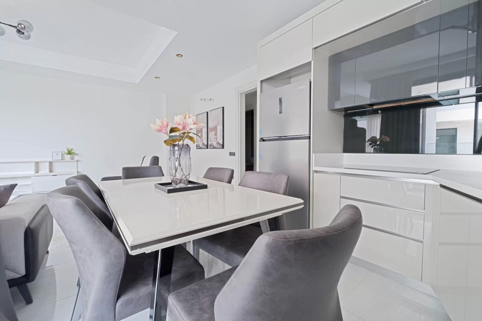 4Diese ultra-luxuriöse 3+1 Wohnung befindet sich in einem der prestigeträchtigsten Projekte Alanyas und vereint höchsten Wohnkomfort, exzellentes Design und erstklassige Qualität. Mit einer großzügigen Wohnfläche von 183 m² ist die Wohnung mit speziell entworfenen Designermöbeln ausgestattet und bietet ein einzigartiges Wohnerlebnis im Hotelkonzept.