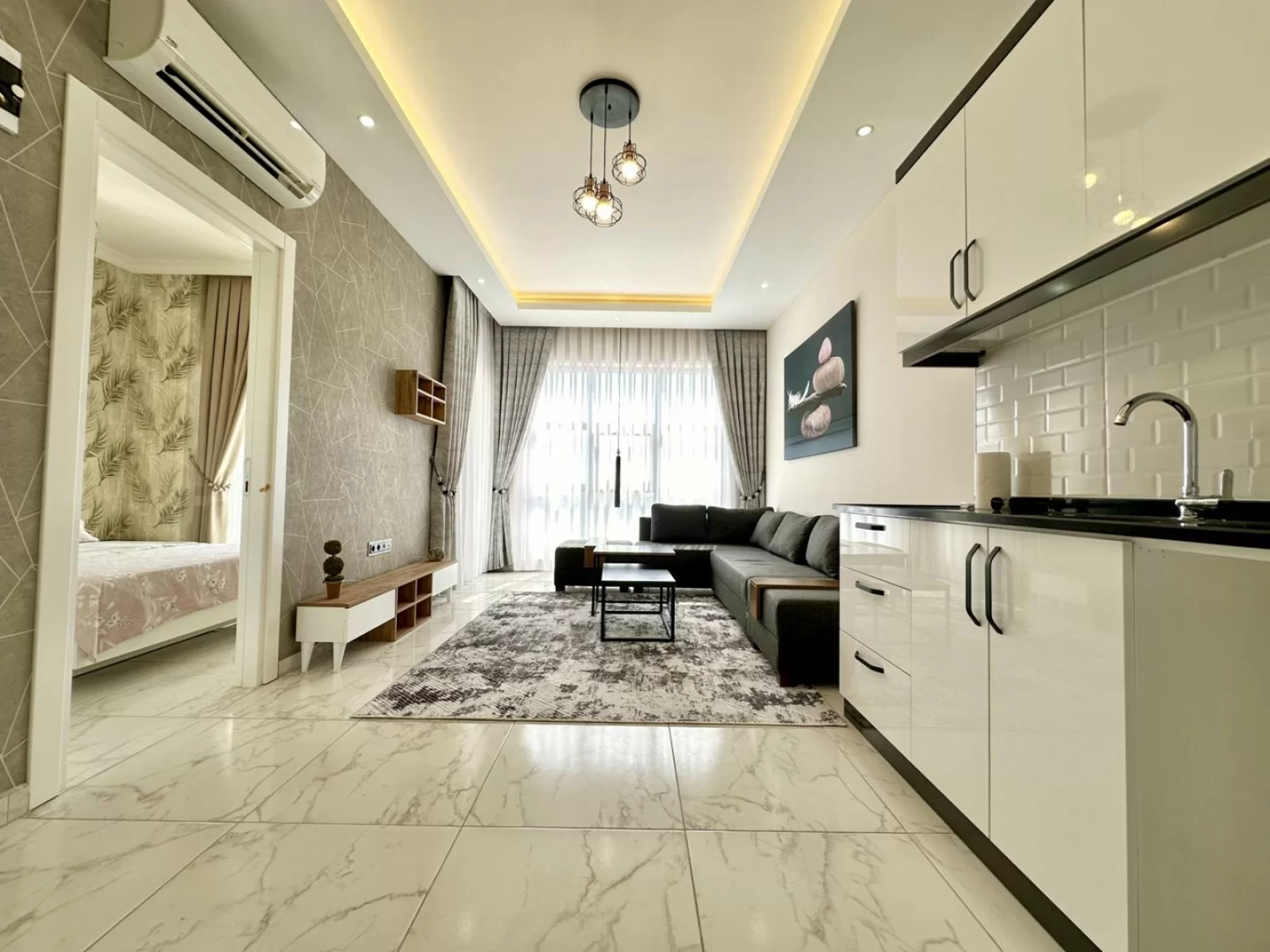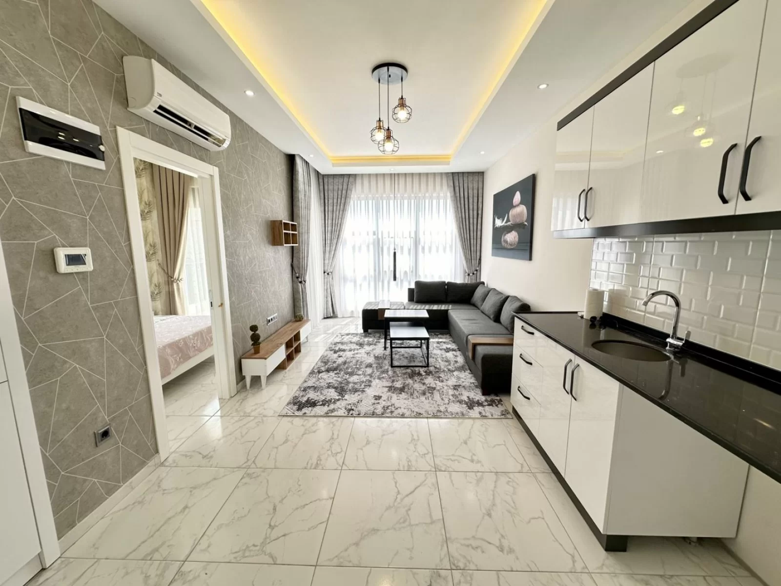 This 1+1 apartment is located in a modern residential complex in Oba, Alanya. Thanks to its south-facing position, it offers a bright and sunny living space throughout the day. Being furnished, it is ready to move in and ideal for both living and investment.