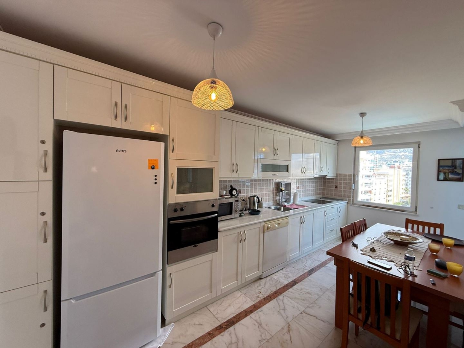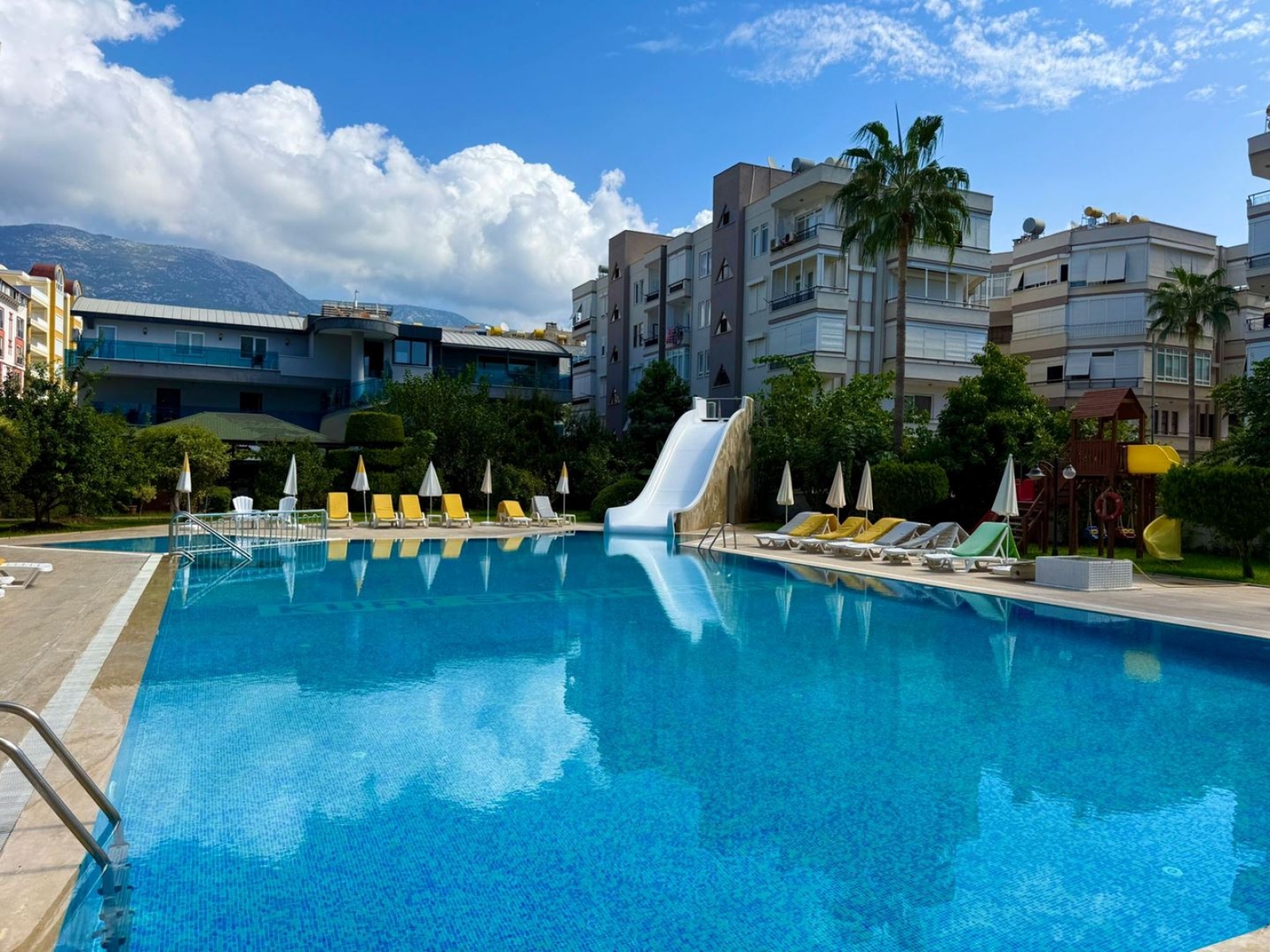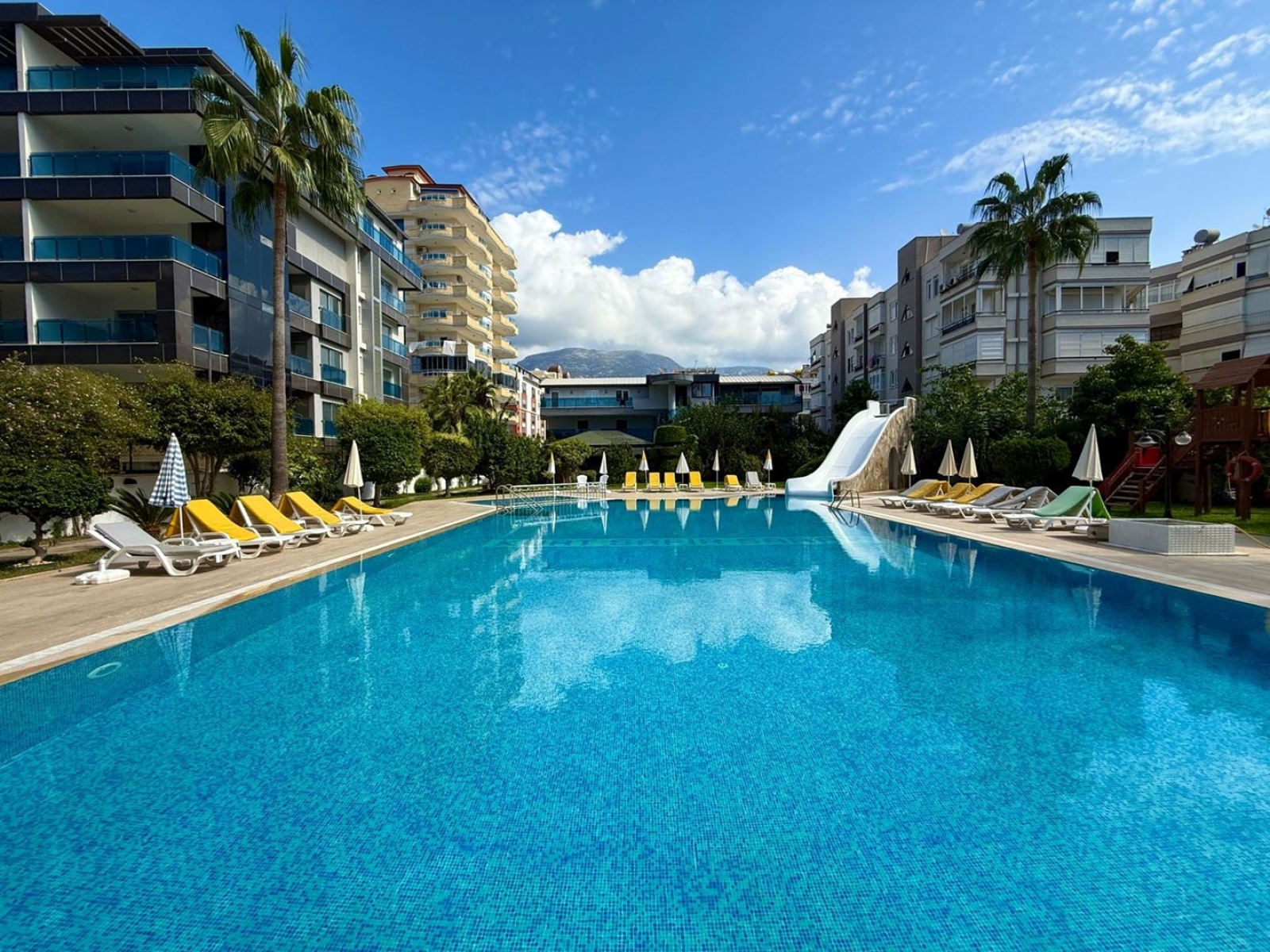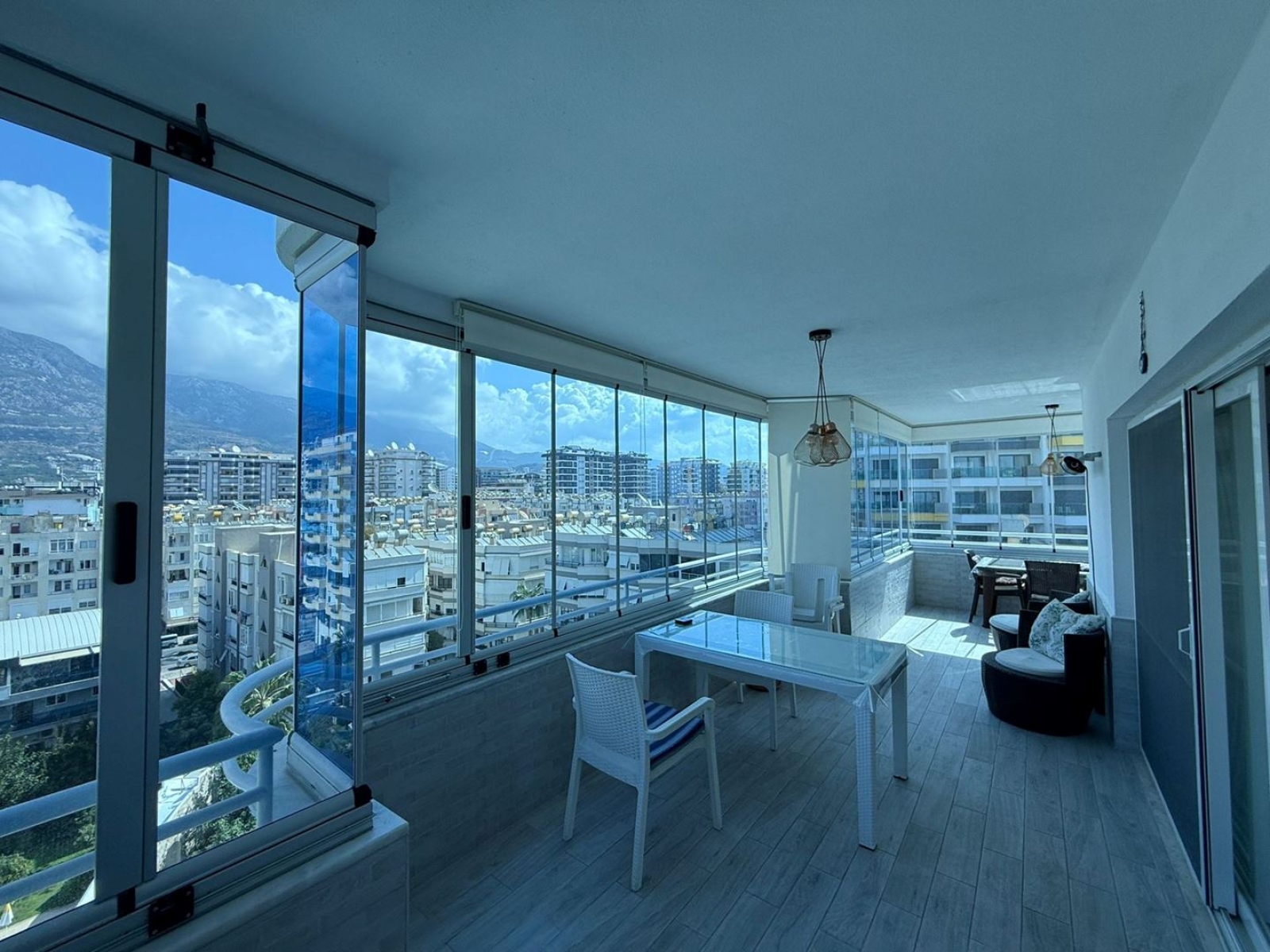 With a spacious 135 m² layout, this 2+1 apartment is situated on the 7th floor and features a large glass balcony with breathtaking sea, pool, and mountain views.