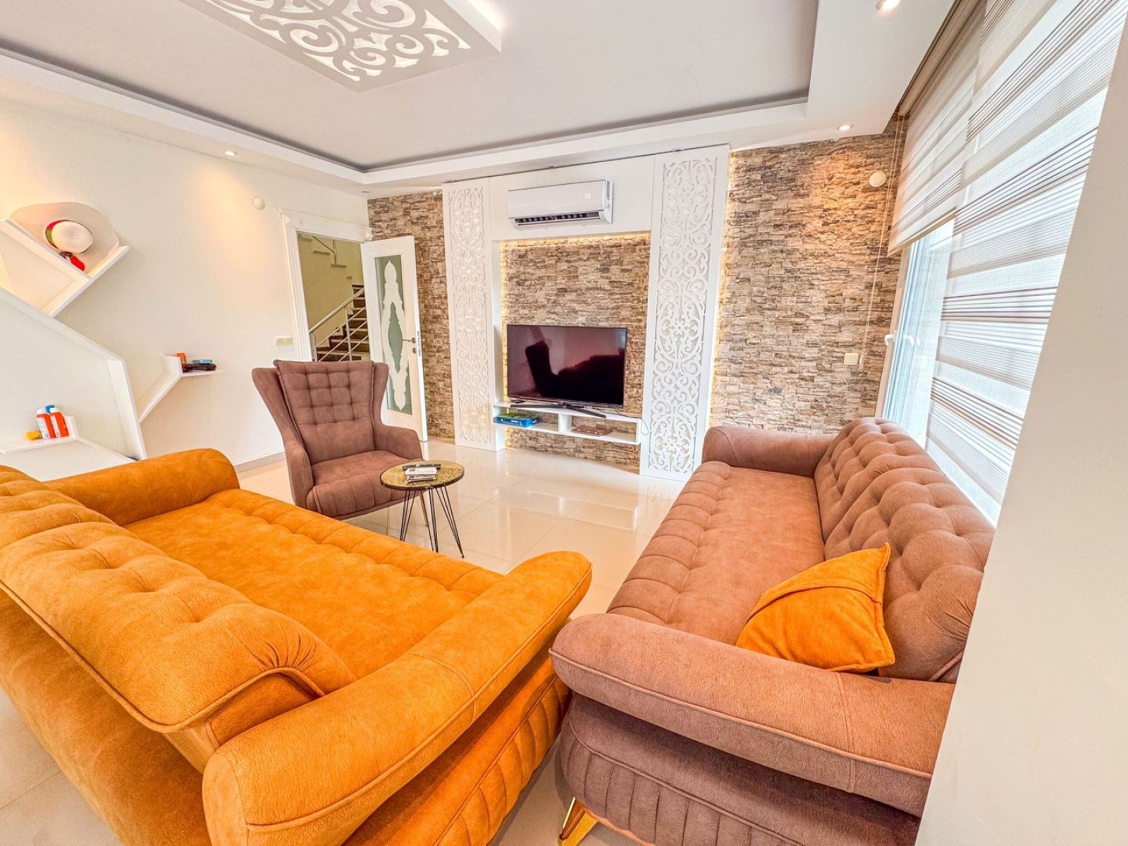 4Located in Kestel, one of Alanya’s quiet and prestigious districts, this luxury 3+1 duplex apartment offers a spacious living area, a separate kitchen, and excellent on-site facilities—ideal for both family living and investment.