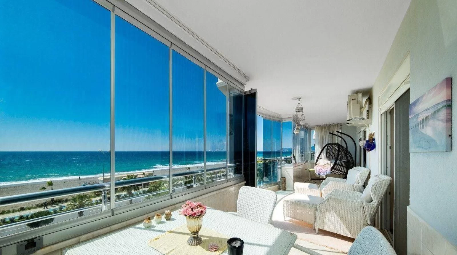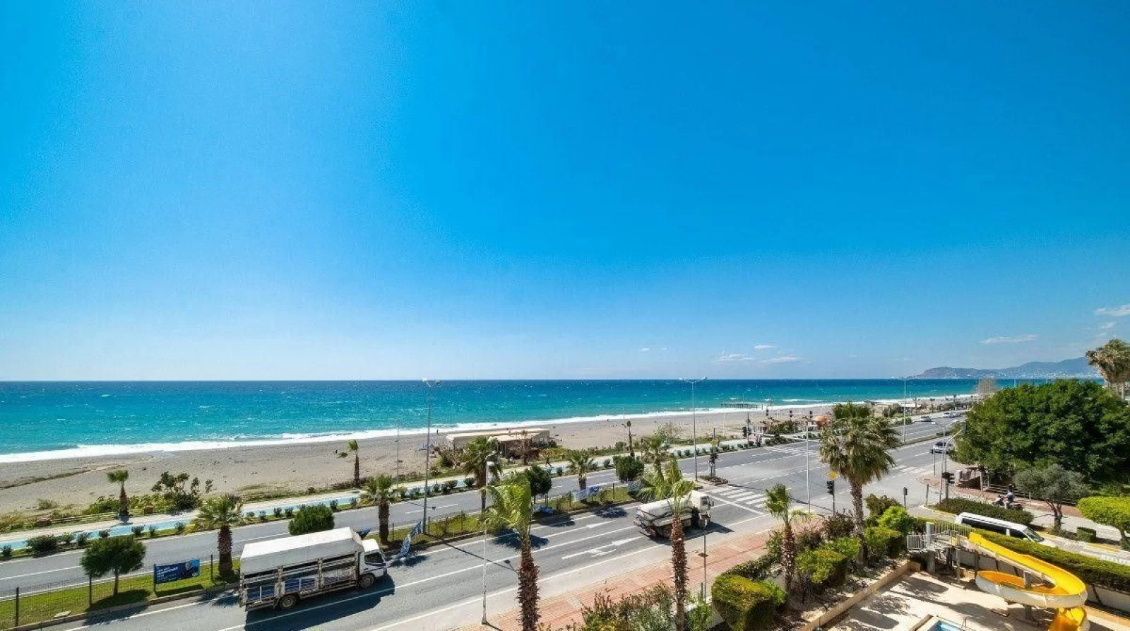 6Located in Mahmutlar, one of Alanya’s most popular areas, this exclusive 2+1 apartment offers a seafront location with an uninterrupted Mediterranean sea view