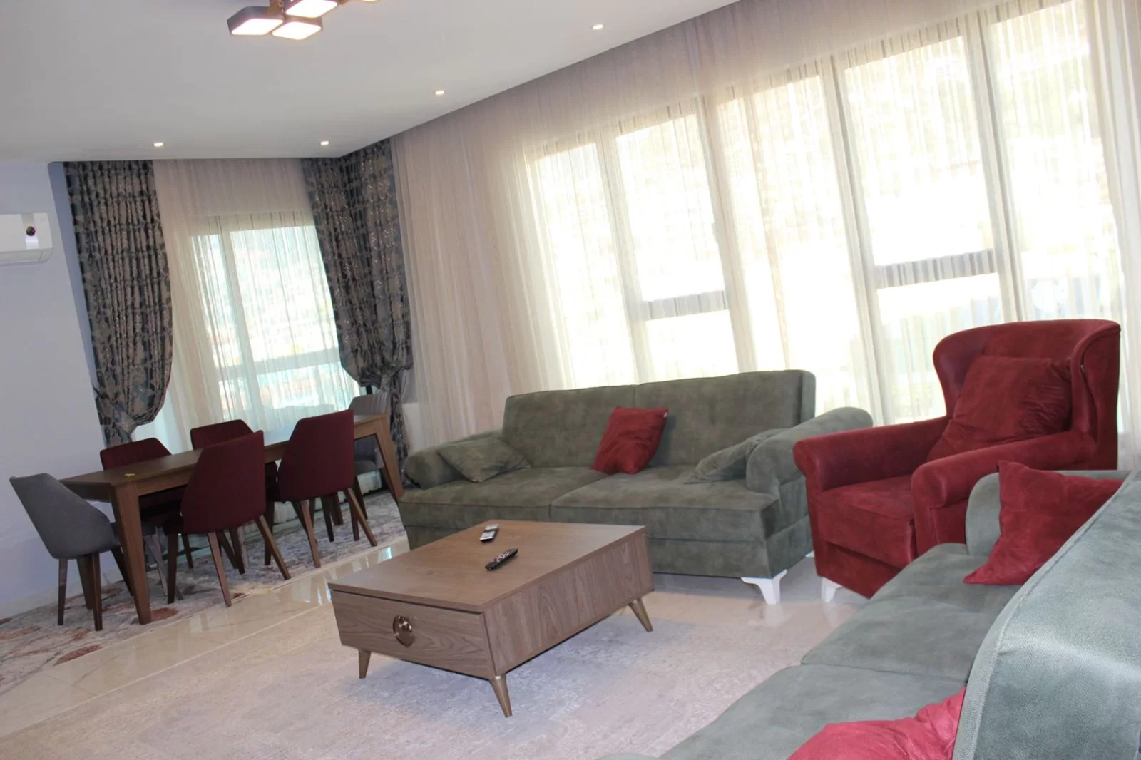 A spacious 3+1 apartment with a total area of 160 m² is offered for sale on the 5th floor of a modern residential complex located in Güller Pınarı, one of Alanya’s most convenient central districts.