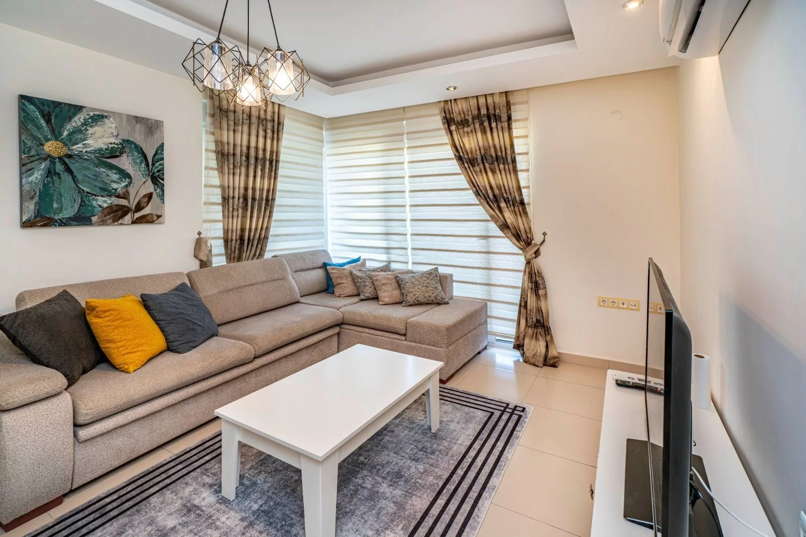Меблированная квартира 2+1 дуплекс, расположенная всего в 200 метрах от моря, предлагает комфортное проживание и развитую инфраструктуру комплекса.