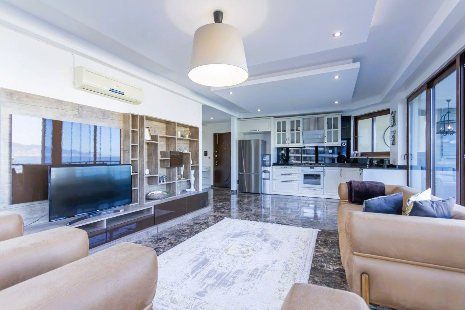Эта квартира 2+1 с мебелью, расположенная всего в 200 метрах от моря, предлагает просторные жилые зоны и отлично подходит как для проживания, так и для инвестиций.