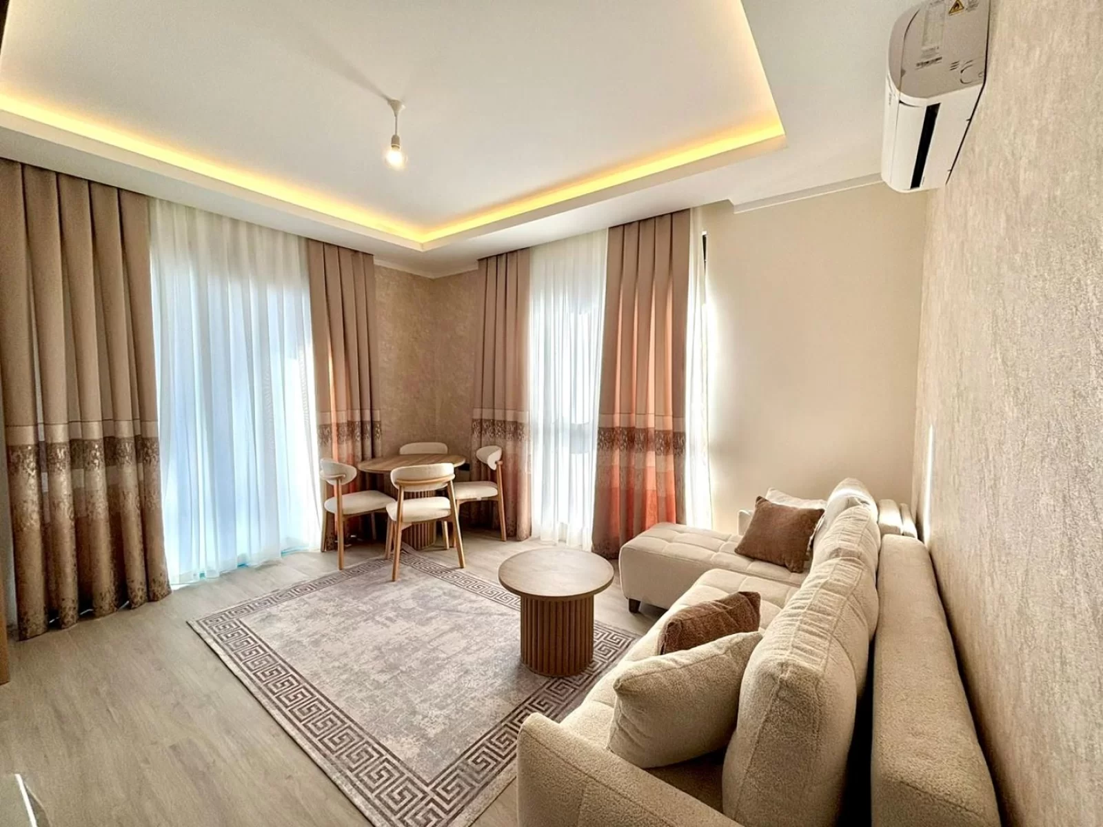 Эта стильная квартира 1+1 расположена в новом доме в районе Махмутлар (Алания) и предлагает современный комфорт с новой роскошной мебелью. Благодаря восточной стороне квартира наполнена утренним светом.